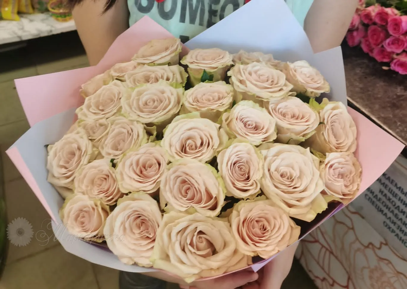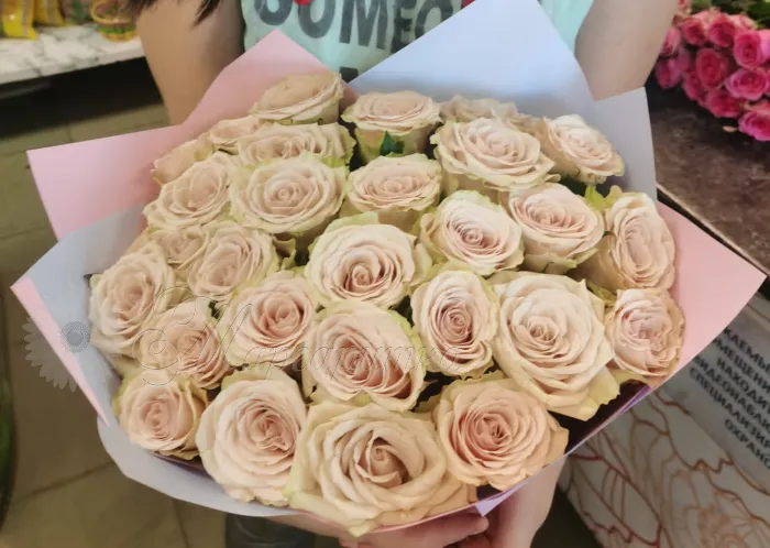 Монобукет роз, напоминающих крем-брюле, растопит сердце любой дамы!