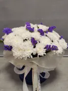 Букет представляет собой элегантную композицию из розовых и фиолетовых цветов, дополненную зеленью и декоративными элементами. Нежные оттенки цветов в сочетании с воздушной упаковкой создают романтичный и трогательный образ, идеально подходящий для выражения чувств. Этот букет станет прекрасным подарком для близкого человека или романтическим жестом.