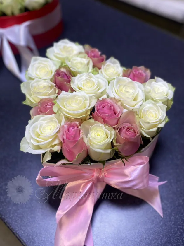 Микс из роз в коробочке «сердце»