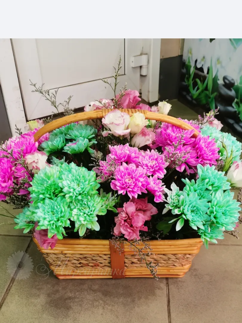 Корзина с кустовыми хризантемами