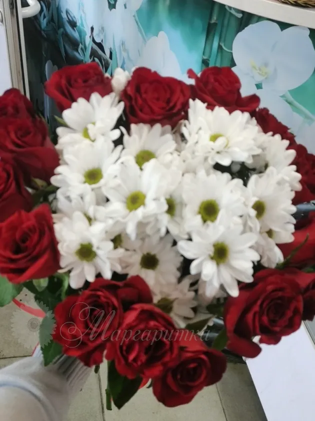 Роза - 9 шт Кустовая хризантема - 5 шт