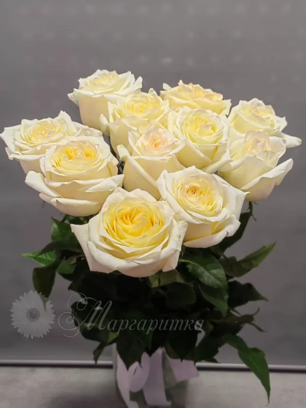 Белоснежные розы в букете